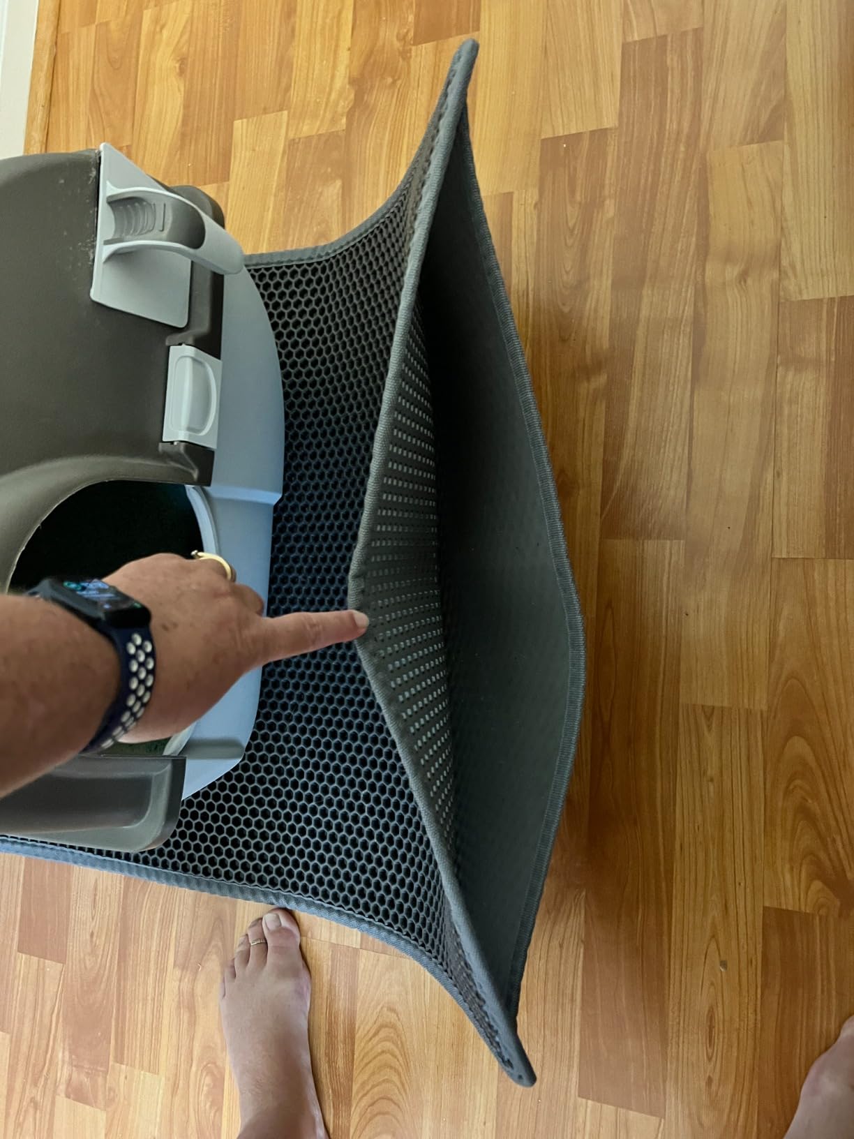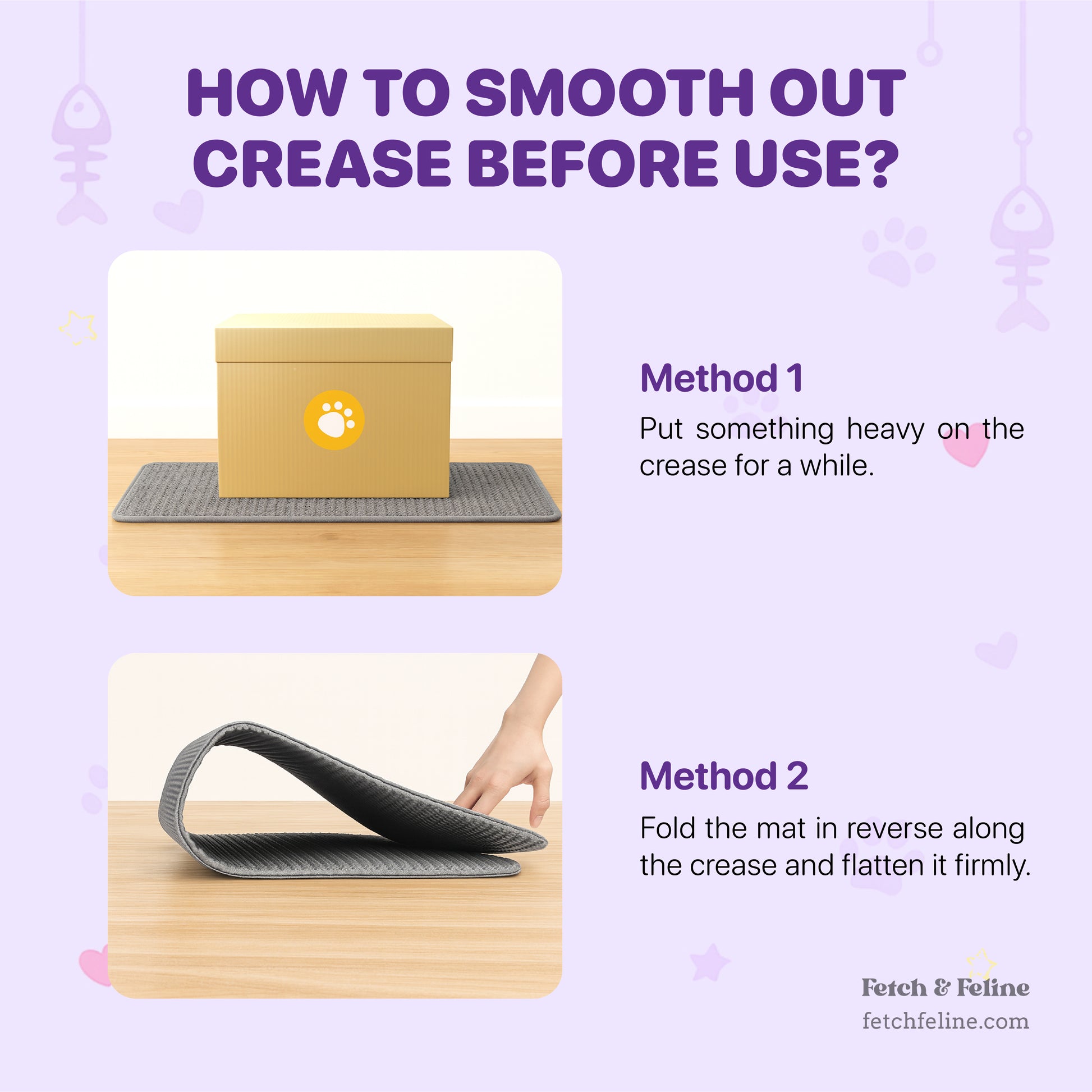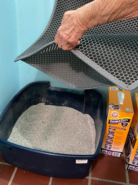 Lay the pad flat under your cat’s litter box. The top layer will catch scattered litter, while the waterproof bottom prevents leaks onto your floor.