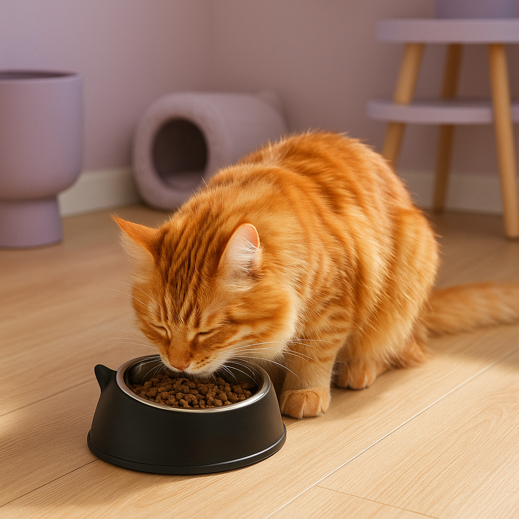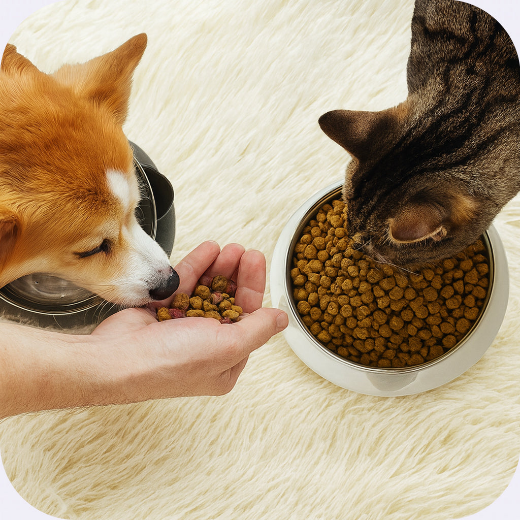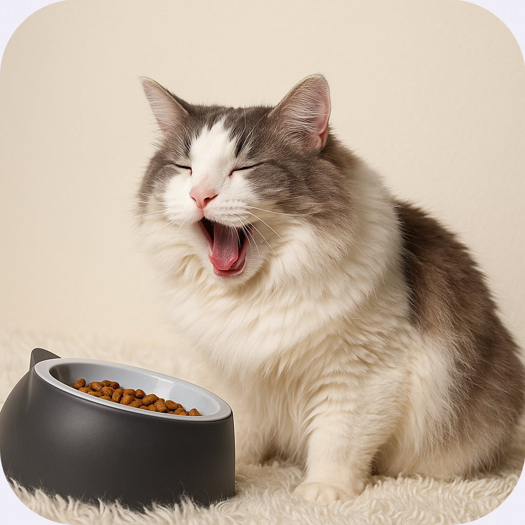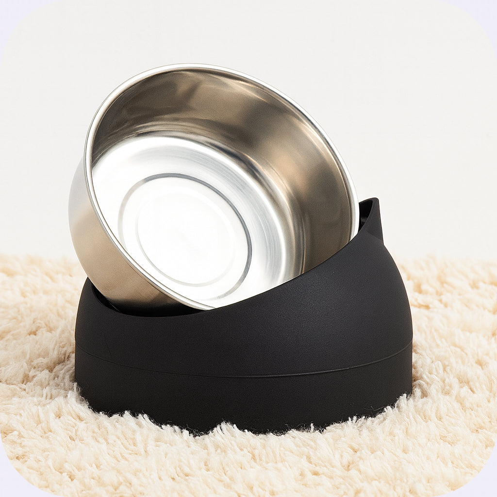 Slightly raised and tilted to reduce neck strain and improve digestion. Especially supportive for kittens, senior cats, and small dogs.