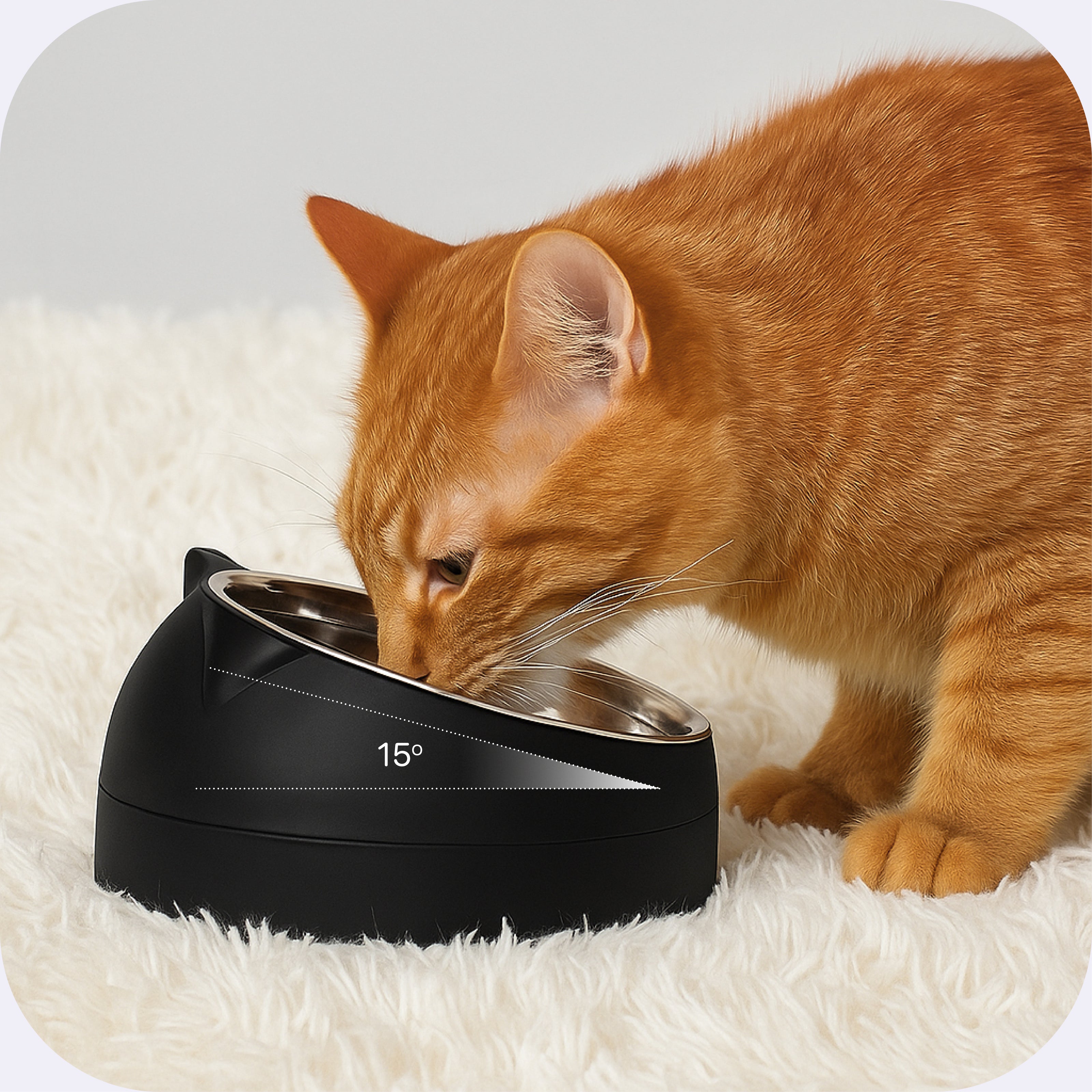 The inclined design reduces neck strain and prevents whisker fatigue, making it more comfortable and healthier for cats and small dogs during mealtime.